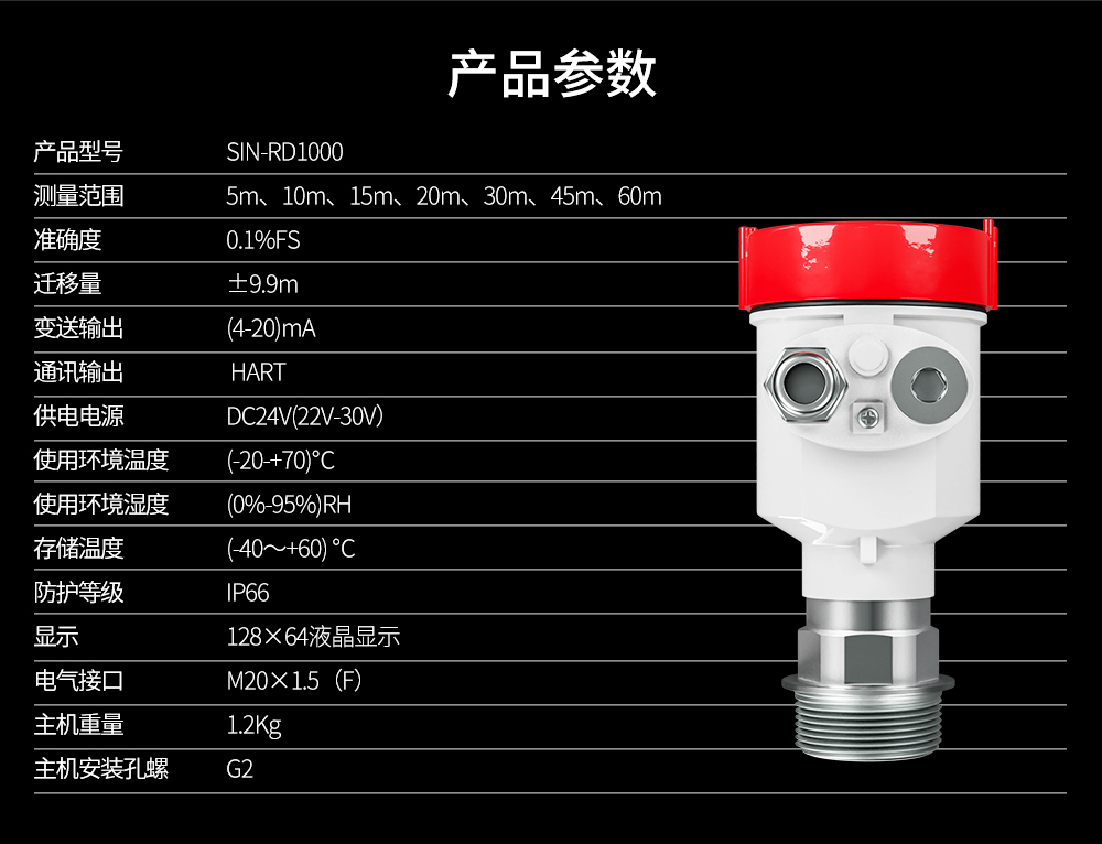 產品名稱:聯測_SIN-RD1000雷達液位計_0-60米水位