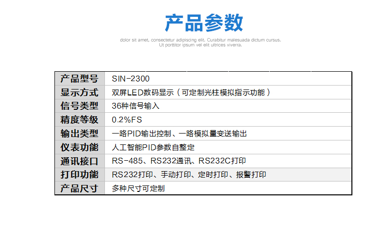 產品描述:SIN-2300可與各類傳感器、變送器配合使用,實現對溫度、壓力、液位、容量、力等物理量的測量顯示,并配合各種執行器對電加熱設備和電磁、電動閥進行 PID 調節和控制、報警控制、數據采集等功能。適用于工業爐,電爐,烘箱,試驗設備,制鞋機械,注塑機械,包裝機械,食品機械,印刷機械等行業。