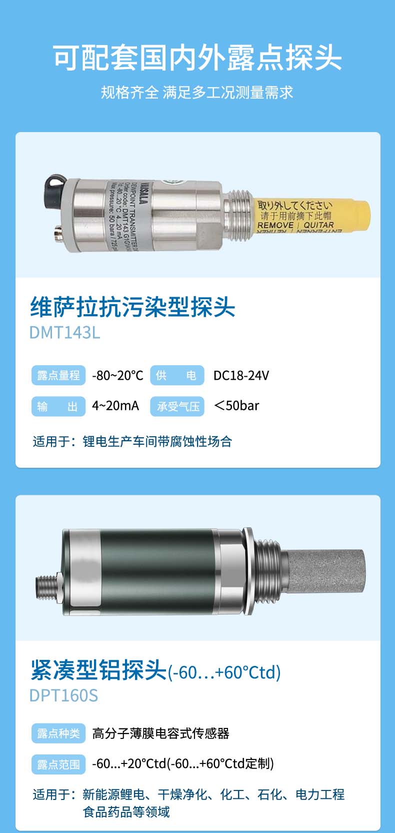 產(chǎn)品描述:兼容度:支持維薩拉露點(diǎn)探頭DMT143/國產(chǎn)通用型探頭